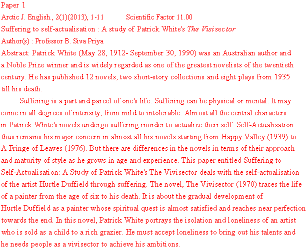 ABSTRACTS OF VOLUME 2 Number1 MARCH 2013