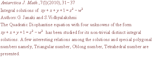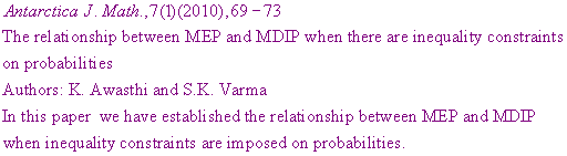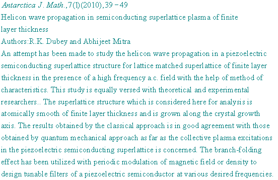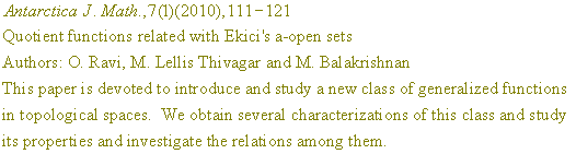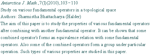 ANTARCTICA JOURNAL OF MATHEMATICS