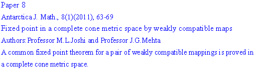 ANTARCTICA JOURNAL OF MATHEMATICS