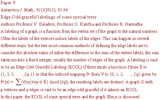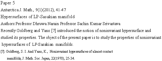 ANTARCTICA JOURNAL OF MATHEMATICS