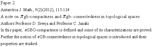 ANTARCTICA JOURNAL OF MATHEMATICS
