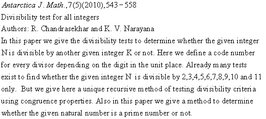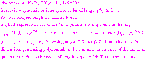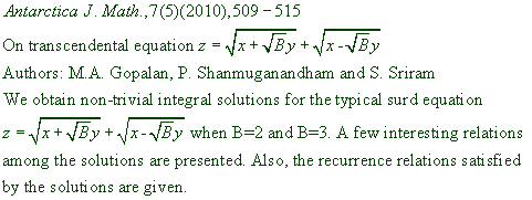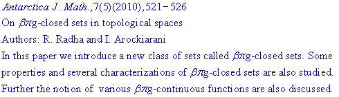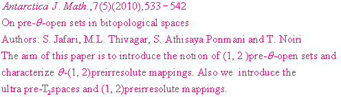 ANTARCTICA JOURNAL OF MATHEMATICS