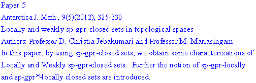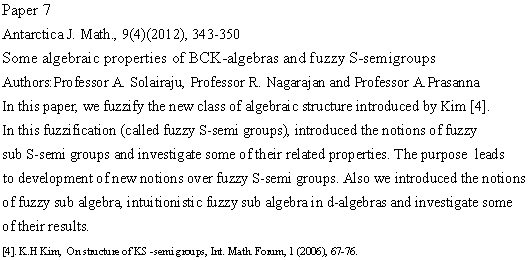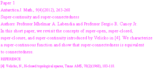 ANTARCTICA JOURNAL OF MATHEMATICS