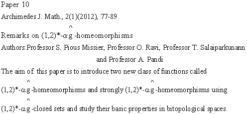 ARCHIMEDES JOURNAL OF MATHEMATICS