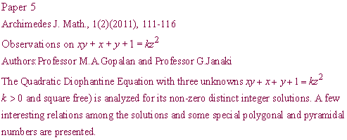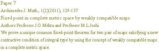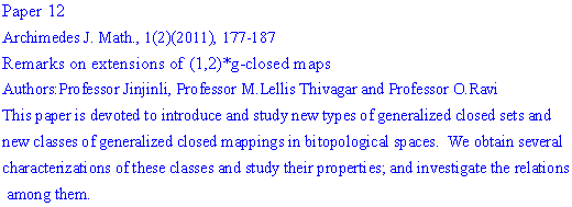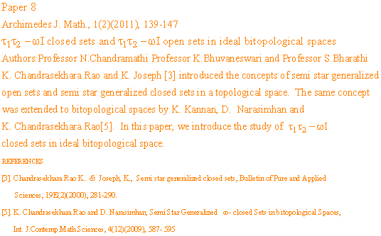ARCHIMEDES JOURNAL OF MATHEMATICS