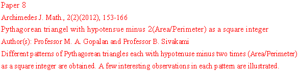 ARCHIMEDES JOURNAL OF MATHEMATICS