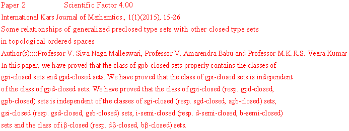 INTERNATIONAL KARS JOURNAL OF MATHEMATICS