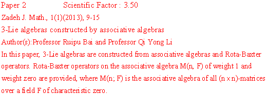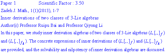 ZADEH JOURNAL OF MATHEMATICS